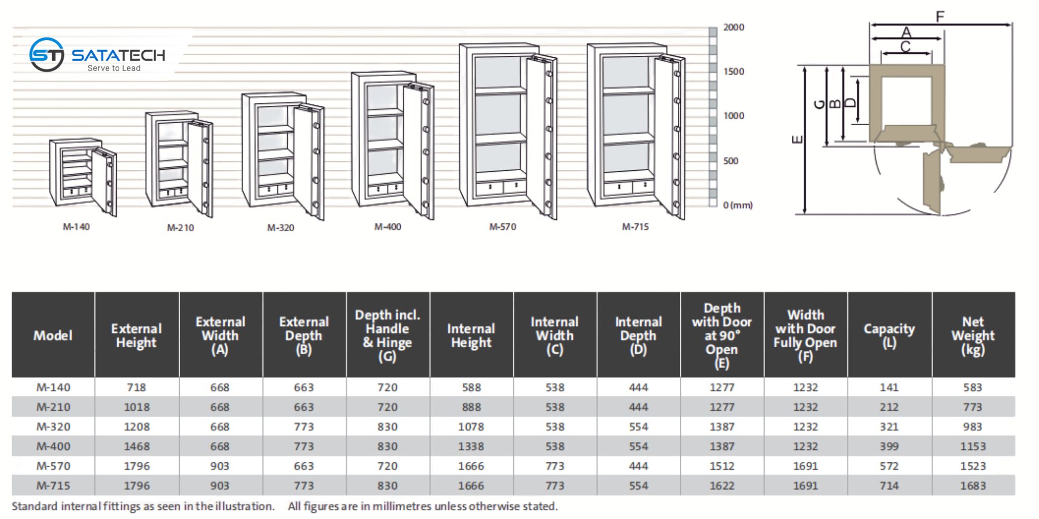 Mỗi chiếc két đều có thể được trang bị thêm các phụ kiện chất lượng cao nhằm tối ưu không gian lưu trữ. Tất cả các mẫu đều được thiết kế có lỗ cố định bắt vít xuống nền nhằm tăng cường sự an toàn, với lớp sơn hoàn thiện màu xám nhạt (RAL 9002).